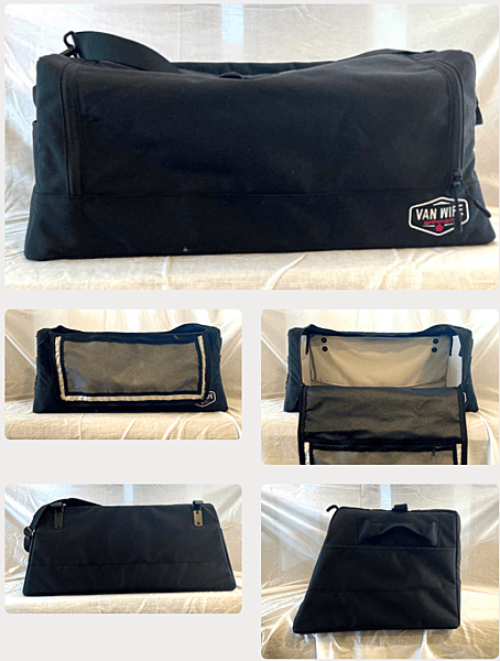 All hanging bags will hang from O-rings on L track or from our J-channel. The 12" bag makes a perfect bag for laundry, carrying small items, and is vented in the front. The drawstring top allows you to enclose the bag so your items don't fall out and can be opened completely to allow the bag to be used as an open top bag. Dimensions at widest point: 18" w x 10" h x 13.5" d